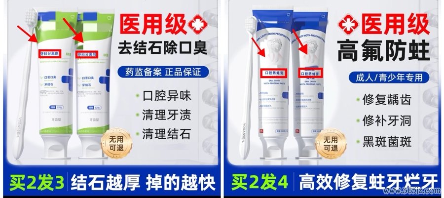 具体的“效果”更异常“神奇”:有的“牙膏”连续用上一个月能“长牙”,龋齿的洞或者烂牙的洞都能自己长好;有的“牙膏”可以去除顽固的牙渍、牙菌斑,还能避免口臭……